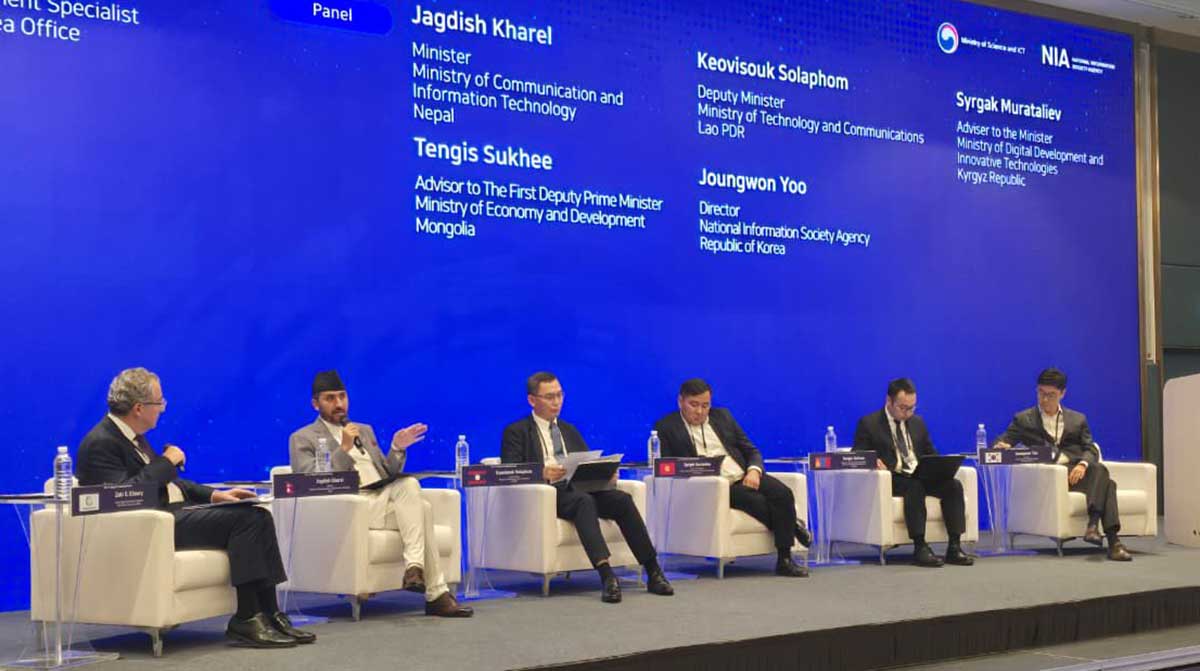 कोरियाको विज्ञान तथा आइसिटी मन्त्रालयको संयुक्त आयोजनामा सिओलमा आयोजित फोरममा ‘डिजिटल र एआई ट्रान्सफर्मेसन: स्ट्राटेजिज एन्ड च्यालेन्ज’ तथा ‘ग्लोबल कोअपरेसन फर सस्टेनेबल डिजिटल फ्युचर’ शीर्षकमा दुई सत्र सञ्चालन भएका थिए।