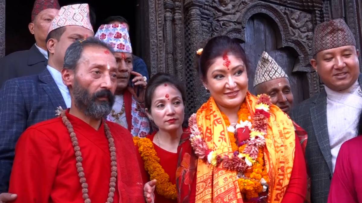 ललितपुर । पूर्वयुवराज्ञी हिमानी शाहले ललितपुरको पाटनस्थित बंगलामुखी मन्दिरको दर्शन गरेकी छन् । शनिवार बिहान उनले पाटनमै रहेको कुम्भेश्वर मन्दिरको पनि दर्शन गर्नुभई पूजापाठ गरेकी हुन् ।
