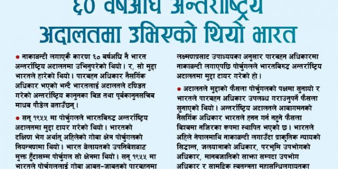६० वर्षअघि अन्तर्राष्ट्रिय अदालतमा उभिएको थियो भारत