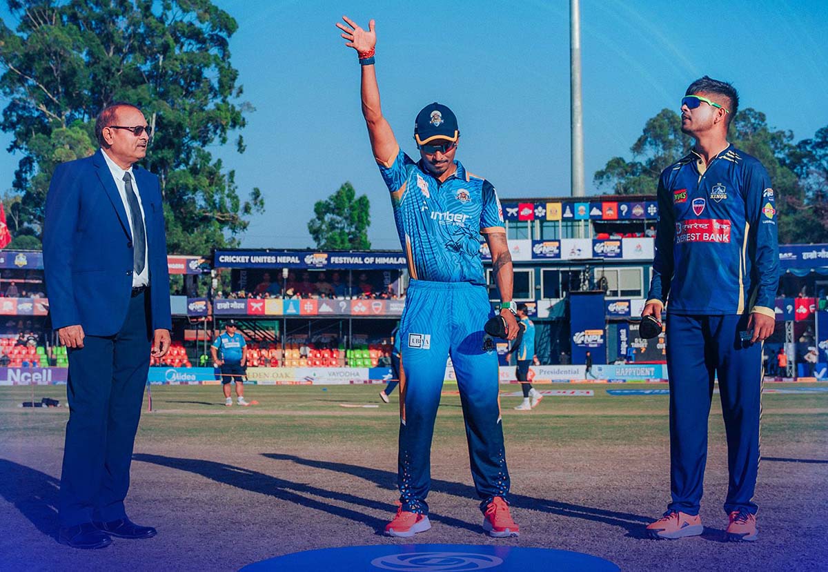 कर्णालीका कप्तान सोमपाल कामीले टस जितेर पहिले ब्याटिङ गर्ने निर्णय गर्नुभएको हो । सन्दीप लामिछाने कप्तानीको विराटनगरले सुरुमा बलिङ सुरु गरेको छ ।