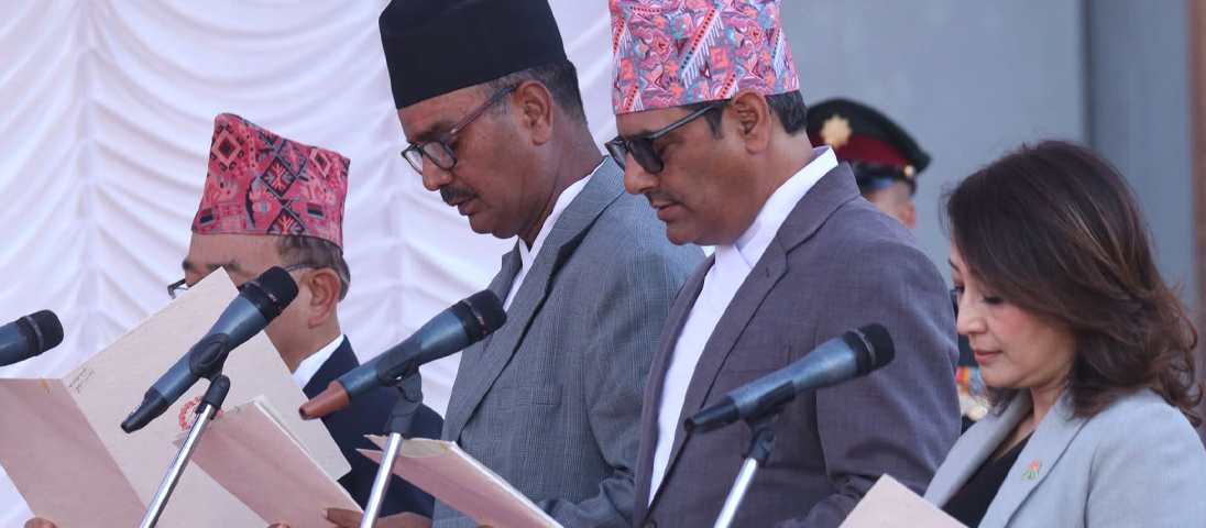 काठमाडौं । नवनियुक्त चार जना मन्त्रीहरूले आज राष्ट्रपति कार्यालय शीतलनिवासमा आयोजित समारोहबीच पद तथा गोपनीयताको शपथ ग्रहण गरेका छन्।