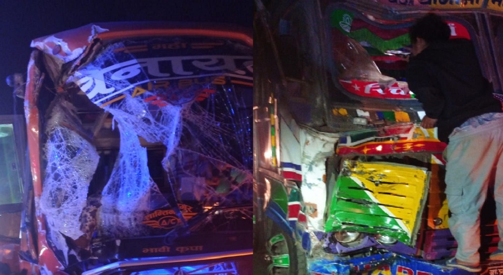 वीरगञ्जबाट चितवनतर्फ जाँदै गरेको बा.प्र.०६–००१ ख ०४१५ नम्बरको चामल लोड गरिएको ट्रक र काठमाडौँबाट झापा आउँदै गरेको प्र.१–०१–००१ ख ४७६८ नम्बरको यात्रुवाहक बस एकापसमा ठोक्किँदा दुर्घटना भएको हो ।