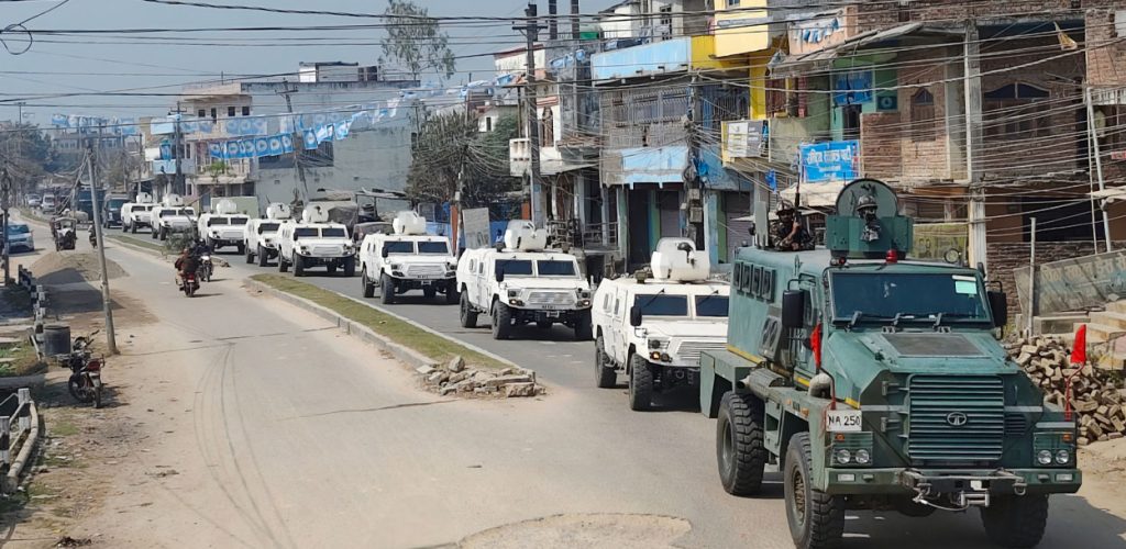 यसअघि नेपाली सेना, नेपाल प्रहरी, सशस्त्र प्रहरीसहितको संयुक्त टोलीले जिल्लाका विभिन्न भागमा गस्ती गर्दै आएको थियो । यसलाई थप मद्दतका लागि सेनाले बख्तरबन्द गाडीसहित चारवटै निर्वाचन क्षेत्रमा गस्ती सुरु गरेको हो ।