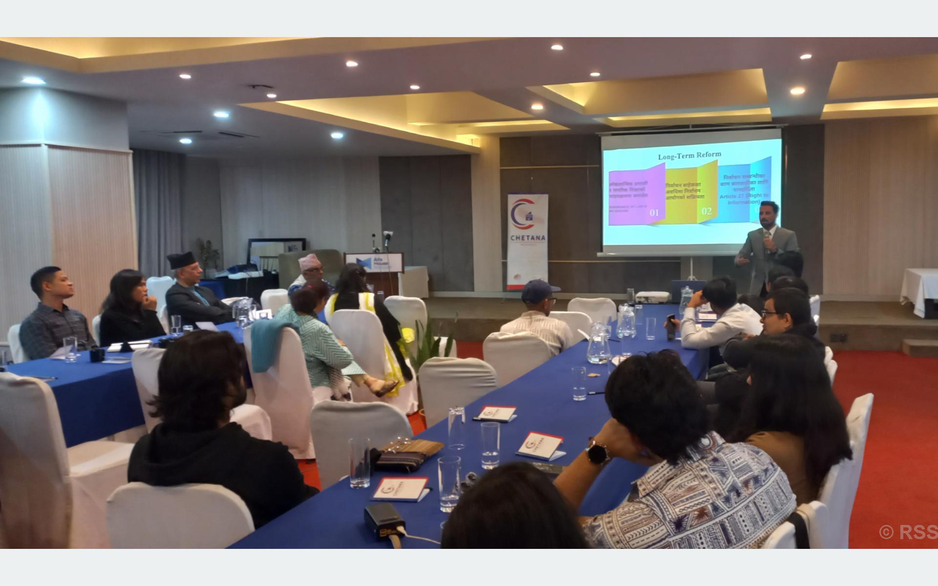 निर्वाचन प्रक्रियालाई थप स्वच्छ र मितव्ययी बनाउन क्रियाशील 'चेतना परियोजना' ले हालै गरेको अनुसन्धानले संविधानमै आवधिक निर्वाचनको मिति तोक्नेदेखि सामाजिक सञ्जालका लागि छुट्टै आचारसंहितासम्मका विषयमा सुधारको खाँचो औँल्याएको हो।