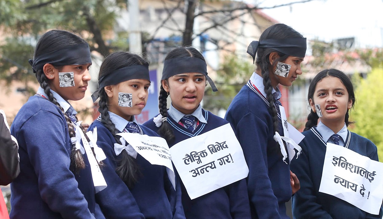 काठमाडौंको माइतीघर मण्डलामा दलित जेनजी अलाइन्सले न्यायको माग गर्दै प्रदर्शन गरेका थिए। प्रदर्शनमा विद्यार्थीहरूले विद्यालय ड्रेसमै सहभागी भएर न्यायको माग गरेका थिए।