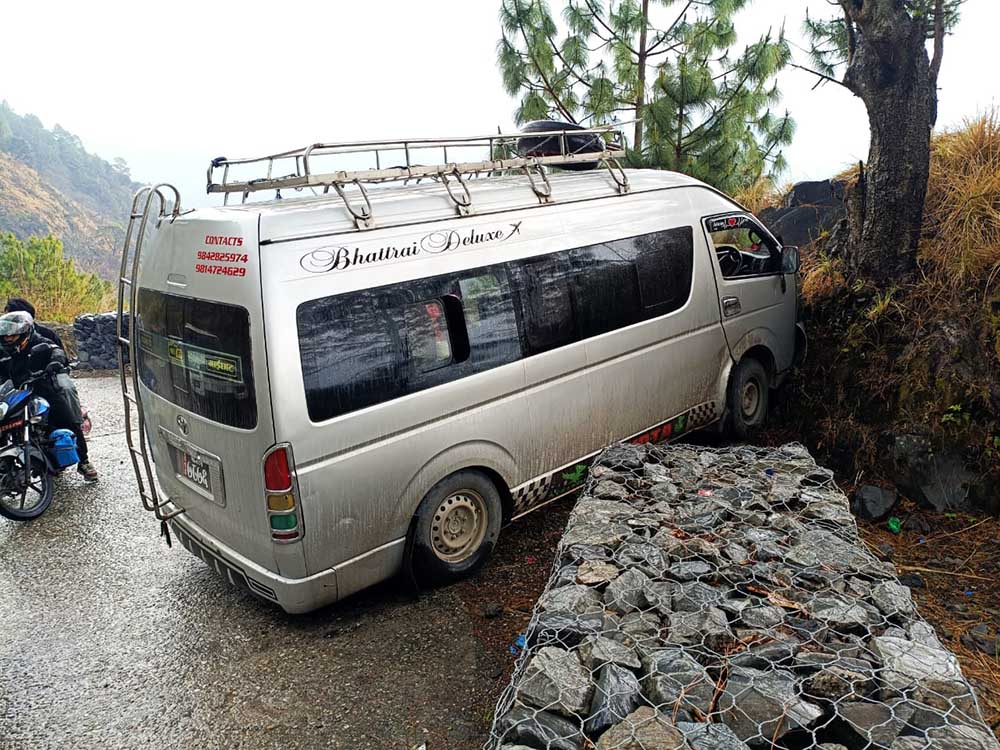 मकवानपुर भीमफेदी गाउँपालिका ६ एघारघुम्ती स्थित सडक खण्डमा दुर्घटना भएको हाइस गाडी ।