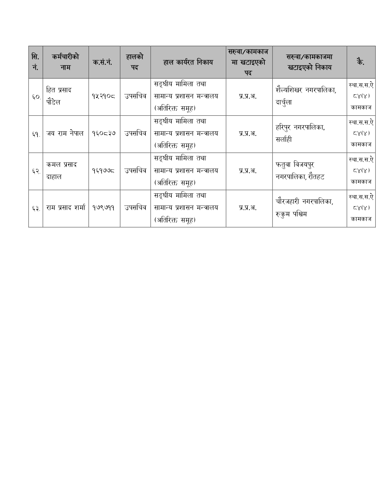 सरूवा भएका मध्ये निमित्तको भरमा चलाइएका स्थानीय तहहरूमा दरबन्दी अनुसार उपसचिवहरू पठाइएको मन्त्रालयले जनाएको छ ।