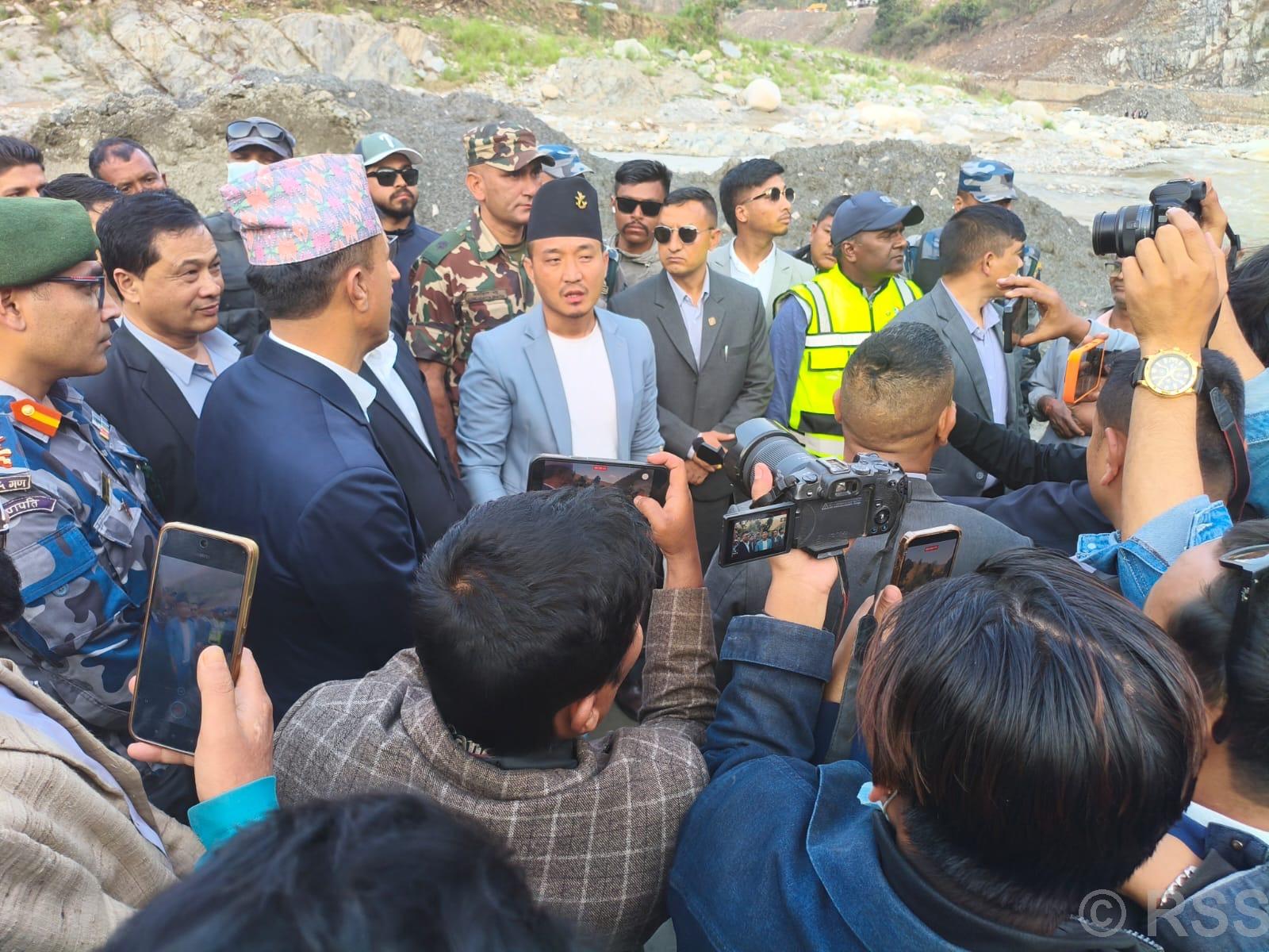 त्यस अवसरमा योगेशले स्थायी निर्माणमा तीव्रता दिइएको तर हालको अवस्थामा पटकपटक भइरहेको वर्षाका कारण केही रोकिएको जानकारी गराए । यस्तै, योगेशले यसअघि अस्थायी रूपमा निर्माण गरिएको डाइभर्सन बगाउँदा पुनःनिर्माण गरी यातायातका साधनलाई पुनः सञ्चालन ग्रिएको जानकारी गराउँदै आगामी वर्षअघि पुरानै सडक लेनमा अस्थायी रूपमा भए पनि यातायात सञ्चालन गर्नेगरी ‘इक्युपमेन्ट’ थपेर निर्माण कार्यलाई तीव्रता दिइएको गृहमन्त्री गुरुङलाई जानकारी गराए।