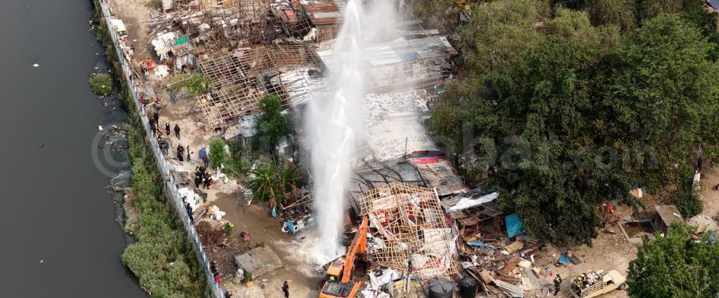 शनिबार बिहान बस्तीका टहरा हटाउने क्रममा पाइप फुटेको हो। पाइप फुटेपछि बस्ती क्षेत्रमा पानी बगेको थियो, जसका कारण त्यहाँका बासिन्दाले बाहिर निकालेका सामानहरू भिजेका छन्।