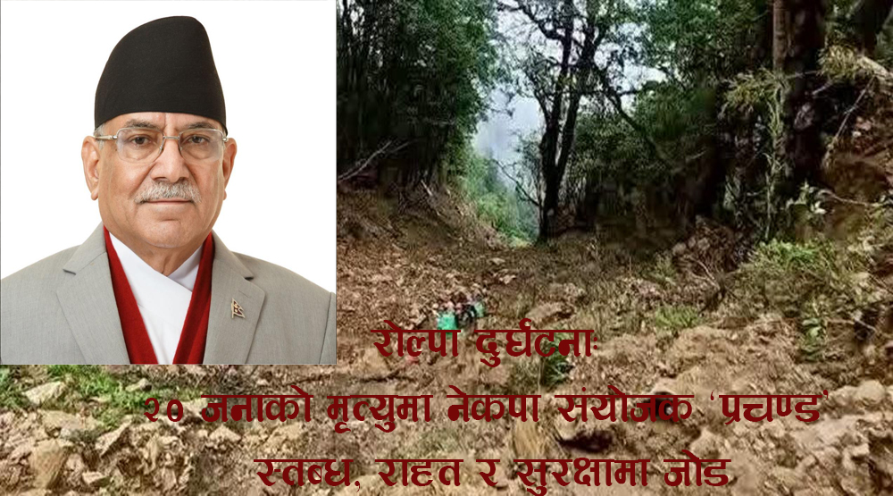 काठमाडौं । नेपाल कम्युनिस्ट पार्टी (नेकपा) का संयोजक पुष्पकमल दाहाल ‘प्रचण्ड’ले रुकुम पूर्व बाट थबाङ गाउँपालिका–१, रोल्पा तर्फ जाँदै गरेको जीप दुर्घटनामा २० जनाको ज्यान गएको घटनाप्रति गहिरो दुःख व्यक्त गरेका छन्।