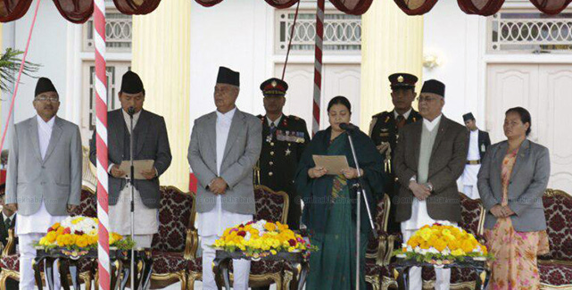 \"sapath1\"काठमाडौं । नवनिर्वाचित उपराष्ट्रपति नन्दबहादुर पुनले पद तथा गोपनियताको सपथ लिएका छन् ।उनले राष्ट्रपति विद्या भण्डारी बात सपथ लिएका हुन ।
