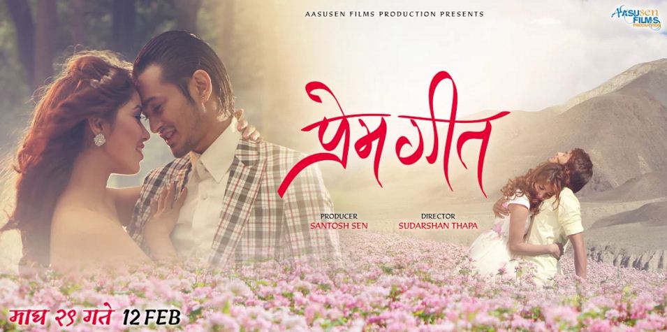 \"poster.2(1)\" पोखरा । नेपाली सिने जगतमा चलचित्र चंखे शंखे पंखे मार्फत बिग ब्यानरको रुपमा उदाएको “आसुसेन फिल्मस”को दोश्रो प्रस्तुति फिल्म ‘प्रेमगीत’को पोष्टर र अडियो सार्वजनिक भएको छ । पोखराको रंगशालामा शनिबार चलचित्र विकास बोर्डका अध्यक्ष राज कुमार राईको प्रमुख आतिथ्यतामा पोखरेली बुद्धिजिवीहरु र दर्जनौ राष्ट्रिय स्तरका कलाकारहरुले हजारौँ दर्शकका माझ पोष्टर र अडियो सार्वजनिक गरिएको छन् ।   सन्तोष सेनले निर्माण गरेको यो फिल्मको निर्देशन नायक तथा निर्देशक सुदर्शन थापाले गरेका छन् । फिल्ममा पुजा शर्मा, प्रदीप खड्का, सरोज खनाल, रुपा राणा, लक्ष्मी गिरी, राजाराम पौडेल लगायतको अभिनय छ । \"Premgeet रोमान्टिक लभस्टोरी रहेको फिल्म यसै बर्षको प्रणय दिवस (भ्यालेन्टाइन डे) को अवसरमा सार्वजनिक गरिनेछ । फिल्ममा भिन्न शैलीका पाचँ ओटा गीतहरु रहेका छन् । फिल्मका भिडियो गीतहरु चाडैँ रिलिज गरिने निर्माण युनिटले जनाएको छ । अर्जुन पोखरेलको संगीत रहेको फिल्मका गीतहरुमा सुगम पोखरेल, अञ्जु पन्त, स्वरुपराज आचार्य, पशुपति शर्मा, पूर्णकला विसी, सुवानी मोक्तान, सन्तोष लामा र स्वेच्छा ठकुरीको स्वर छ । फिल्मका यी गीतहरुलाई रेनिषा राईले कोरियोग्राफी गरेकी छन् ।   मुस्ताङ, काठमाडौँ र पोखरा लगायत रमणीय तथा पर्यटकीय क्षेत्रमा सुटिङ गरिएको फिल्मका दृश्यहरु आकर्षक ढंगले फिल्मका कैद गरिएको छ ।
