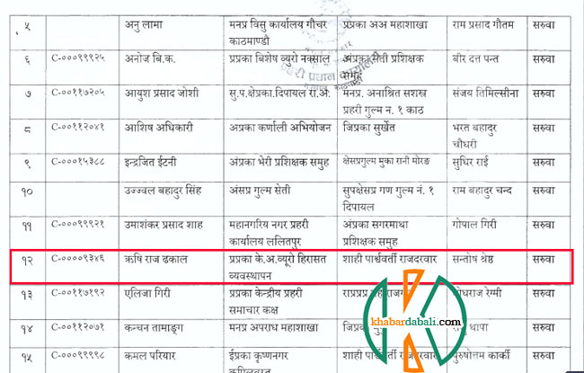 नेपाल प्रहरीको सरुवा सूचीमा ‘शाही पाश्र्ववर्ती राजदरबार’