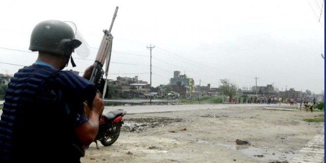 \"policeसप्तरी   । सप्तरीको राजविराजमा मधेशी मोर्चाका कार्यकर्ता र प्रहरीबीच झडप भएको छ झडपका क्रममा प्रहरीले चलाएको गोली लागेर दुई जना घाइते भएका छन् ।