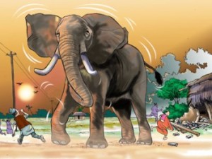\"Hatti-terror_20120106093157-350x262\"सप्तरी । कोशी पप्पु वन्य जन्तु अरक्षबाट आएको एक आत्तिले सप्तरीको जोगिनियाा गाविसमा रहेको एउटा बोर्डिङ स्कुल  शनिबार भत्काई दिएको छ । एकाक्सि कोसी टप्पु वन्यजन्तु आरक्षबाट निस्केको हात्तीले जोगिनियाँ गाविस– ९ ९हाल हनुमाननगर जोगनिमाई नगरपालिका– १० सकरदहीमा रहेको शेखर बोर्डिङ स्कुलमा तोडफोड गरेको स्थानीयवासी लाल माझीले बताए। स्कुलको भित्तामा हात्तीले आक्रमण गर्दा स्कुलमा क्षति पुगेको बताइएको छ । साथै गाउँमा एक्कासि हात्ती पसेको देखेपछि स्थानीयवासी त्रसित भएका थिए । गाउँ पसेको हात्तीलाई स्थानीयवासीले लखेटेका थिए । रासस