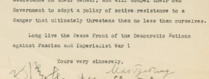 \"maoletter3\"   एजेन्सी । चिनियाँ कम्यूनिस्ट पार्टीका अध्यक्ष माओ त्से तुङले बेलायतको तत्कालिक लेवर पार्टीका नेता क्लेमेन्ट एटलीलाई लेखेको चिठ्ठी ९ करोड ८२ लाखमा बिक्री भएको छ । मंगलवार भएको लिलामीमा उक्त चिठ्ठी यति ठुलो रकममा विक्री भएको हो । यति ठुलो रकममा विक्री हुनाको कारण माओले अंग्रेजीमा विरलै गरेका हस्ताक्षर मध्य एक हुनु र सो पत्रको ऐतिहासिक महत्व रहनु हो भनिएको छ ।   यस पत्रमा माओले चीन माथिको जापानी आक्रमण विरुद्ध लेवर पार्टीको व्यवहारीक सहयोगको अपिल गरिएको छ । पत्रमा माओले ब्रिटिश जनता चिनियाँ जनताको समर्थनमा उठ्नेछ र ब्रिटिश सरकारलाई सक्रिय प्रतिरोधको लागि वाध्य पार्नेछन् भनेका छन् । माओले शुरुआति दिनहरुमा गरेको विश्वव्यापी कूटनीतिको एक सटिक उदाहरणको रुपमा पनि यस पत्रलाई लिइएको छ ।