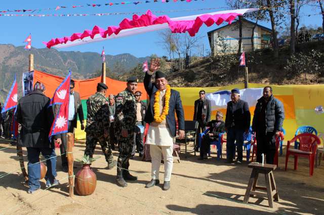 रोल्पा । उपराष्ट्रपति नन्दबहादुर पुन ‘पासाङ’ बिहीबार र शुक्रबार गृह जिल्ला रोल्पाको विभिन्न कार्यक्रममा सहभागी भए । बिहीबार सैनिक हेलीकोप्टरमार्फत सदरमुकाम लिबाङ पुगेर २८ औं खुला दिशामुक्त जिल्ला र २१ औं साक्षर जिल्ला घोषणा गरेर साँझ राङसी ९ भनभनेस्थित आफ्नो घरमा पुगे । साँझ आफ्नै घरमा बास बसे ।   शुक्रबार आफूले पढेको र पढाएको जनसेवा उमावि राङसी र स्कूल प्रांगणमा आयोजित पूर्ण खोपयुक्त गाविस घोषणा तथा उपराष्ट्रपति पासाङको नागरिक अभिनन्दन कार्यक्रममा सहभागी भए । शुक्रबार नै सैनिक हेलीकोप्टरमार्फत काठमाडौं फर्के ।   उनी उपराष्ट्रपतिमा निर्बाचित भएलगत्तै उनका बुबाले आफुलाई भेट्न छोरो घरमै आउनुपर्ने बताएका थिए । उनले आफ्नो बुबाको इच्छासमेत पुरा गरेर फर्किए । शान्त एंव स्वच्छ छविका पूनका रोल्पा भ्रमणका केही फोटा उनको सचिवालयले हामीलाई उपलब्ध गराएको छ –   \"rolpa_pasang \"rolpa_pasang \"rolpa_pasang \"rolpa_pasang \"rolpa_pasang \"rolpa_pasang \"rolpa_pasang \"rolpa_pasang \"rolpa_pasang \"rolpa_pasang