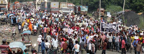 विरगंजमा मधेसी मोर्चाको लाठी जुलुस, सवारी साधनमा तोडफोड