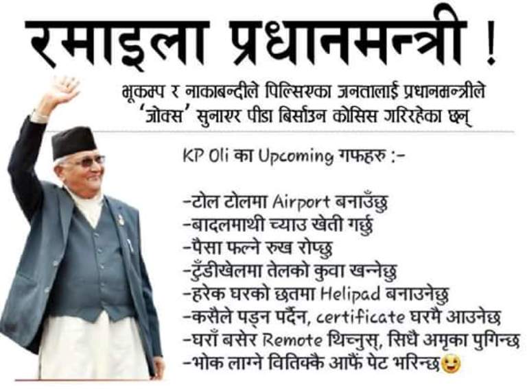 फेसबुकमा यसरी भाइरल बन्यो ‘रमाइला प्रधानमन्त्री !’ का जाेक्स