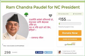 काठमाडौं । नेपाली कांग्रेसका उपसभापति रामचन्द्र पौडेलले आसन्न महाधिवेशनका क्रममा सभापति पदमा उठ्नका लागि निर्वाचन अभियान चलाउन ईन्टरनेटबाट फण्ड संकलन गर्न थालेका छन् ।\"ramchandra\" उपसभापति पौडेलले क्राउड फन्डिङ वेबसाइट ’गो फण्ड मि’ मार्फत् पौडेलले झण्डै ३१ लाख रुपैयाँ करिब २० हजार पाउण्ड सहयोगको आह्वान गरेका छन् । गो फन्ड मि, क्राउड फन्डिङका लागि चर्चित वेबसाइटहरु मध्ये एक हो । गृह मन्त्रालय सहित उपप्रधान, शान्ति तथा पुन निर्माण मन्त्रालय सम्हालिसकेका पौडेलले फण्डमार्फत उठेको रकमले खाना र बस्न , कार भाडामा लिन, पर्चा छपाई गर्न, मिटिङ हलको भाडामा तिर्ने र हवाई टिकट जस्ता काममा उपयोग गर्ने वेबसाइटमा उल्लेख गरेका छन् । गो फन्डको विवरणमा डोमेस्टिक हवाई टिकटको मूल्य एकतर्फिको पाँच हजार रुपैयाँ, प्रति व्यक्ति खाना बस्नको लागि एक दिनको ३ हजार रुपैयाँ, कार भाडामा लिन प्रति दिन ५ हजार देखि १० हजार रुपैयाँ लाग्ने, ३ लाख वटा पर्चा छाप्न २ लाखदेखि ३ लाख रुपैयाँ लाग्ने खर्च उल्लेख गरिएको छ । गो फन्ड मि बेवसाईडले प्रत्येक डोनेसन र प्रोसेसिङ फि गरि ८ प्रतिशत शुल्क प्रत्येक डोनेसनबाट काट्ने गर्र्दछ ।  यो बेवसाईड मार्फत बिभिन्न सामाजिक कामका लागी फण्ड संकलन गर्ने गरिन्छ तर भूकम्पपछि क्राउड फन्डिङ वेबसाइटहरुमा व्यक्तिगत रुपमा चन्दा उठाउने अभियान  चले पनि नेपालमा राजनीतिक अभियानका लागि चन्दा उठाइएको पहिलो पहिलो पटक हो । क्राउड फन्डिङ वेबसाइटमा लक्षित चन्दा रकम नपुगे पनि जति रकम उठेको छ त्यसबाट शुल्क कटाएर लिन पाइने व्यवस्था छ । गो फण्ड मि मार्फत अहिलेसम्म पौडेलले ६५३ पाउण्ड  (करिब एक लाख एक हजार रुपैयाँ ) रकम सहयोग प्राप्त गरेका छन् ।