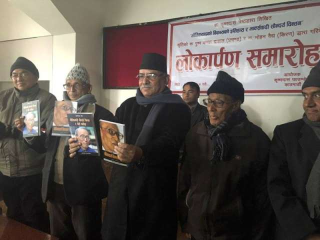 काठमाडौं । एकिकृत नेकपा माओबादी अध्यक्ष प्रचण्डले विचारको शक्तिलाई भौतिक शक्तिमा बदल्नुपर्ने बताएदै नयाँ बैचारिक धरातल र नयाँ एकताको खोजी गर्नुपर्ने बताए । राजधानीमा आज आयोजित कृष्णदास श्रेष्ठद्वारा लिखित भौतिकवादको विकासको इतिहास र माक्र्सवादी सौन्दर्य चिन्तन नामक कृतिको विमोचन कार्यक्रममा यस्तो बताएका हुन ।\"book-4-640\" प्रचण्डले नेपालको स्थिति पेचिलो र गम्भीर भएको बताएदै भने ‘हामी माओवादी र कम्युनिष्टहरुले जनता र राष्ट्रप्रति निष्ठाका साथ नयाँ धरातल खडा गर्नुपर्छ ।” प्रचण्डले मात्रात्मक रुपमा कम्युनिष्ट आन्दोलनको विकास भएको तर गुणात्मक हिसावले ह्रास भएको भन्दै चिन्ता ब्यक्त गरे । उनले कम्युनिष्ट आन्दोलन भित्र पूँजीवादको यति धेरै बोलवाला रहेकोे बताएदै सम्झौता आत्मासमर्पण तिर डोर्याएको छ भने अर्को तिर ठोस बस्तुको विश्लेषण गर्न नसक्ने स्थिति पनि देखा परेको दाबी गरे । नयाँ धरातलमा टेकेर कम्युनिष्टहरुलाई एकतावद्ध गर्नुपर्ने आवश्यकता रहको बताउदै, माओबादि हरु एउटै धाराबाट विकसित भई एउटै स्कूलिङ भएकाहरुले नै दायाँ र बाँया तिर हेर्ने कमजोरी गरेको उनले बताए । अध्यक्ष प्रचण्डले विगतमा गरेका यसखाले मनोगतवादी कमजोरीलाई सच्चाएर एकतावद्ध भई वर्ग संघर्षलाई नयाँ शिराबाट उठाउन जरुरी भएको बताए । कार्यक्रममा नेकपा (क्रान्तिकारी माओवादी) अध्यक्ष मोहन वैद्य किरणको अध्यक्षतामा सम्पन्न विमोचन कार्यक्रममा साहित्यकार निनु चापागाई, अमर गिरी, हिरण्यलाल श्रेष्ठ, जगदिश चन्द्र भण्डारी लगायतले कृतिको समिक्षा गरेका थिए ।