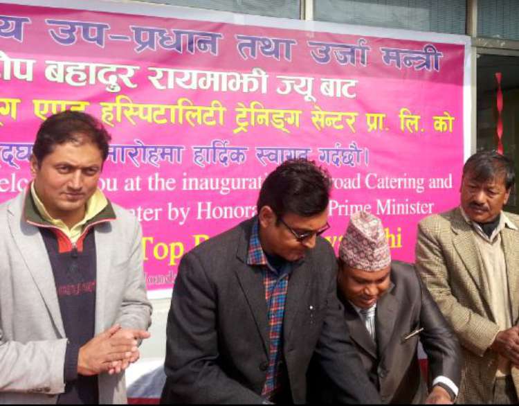\"12626056_1150060461684512_1705615496_n-750\" काठमाडौं । दैनिक १५ घन्टा लोडसेडिङ भइरहेको अवस्थामा उर्जामन्त्री टोपबहादुर रायमाझीले १५ दिन भित्रमा ९० मेघावाट बिजुली भारतबाट निर्यात गरि लोडसेडिङ घटाउने बताएका छन् । आज राजधानीमा ‘ब्रोड क्याटरिङ हस्पिटालिटी एण्ड टे«निङ सेन्टर’को उद्घाटन गर्दै मन्त्री रायमाझीले सो कुरा बताएका हुन् । उनले ढल्केबर मुजफ्फरपुर को प्रसारण लाइनको काम १५ दिनमा सम्पन्न गरि भारतबाट ९० मेघावाट बिजुली आयात गर्ने बताएका हुन् । सो कार्यक्रममा उनले १० वर्षभित्रमा १० हजार मेघावाट बिजुली उत्पादन गर्ने मन्त्रालयको लक्ष्य रहेको समेत जानकारी दिए । आर्थिक क्रान्तिका लागि स्वदेशमै तालिमको ग्यारेन्टी गर्ने उदेश्यका साथ स्थापना भएको टे«निङ सेन्टर युवाहरुको स्वतन्त्र पहलमा स्थापना गरिएको हो । उक्त कार्यक्रममा नायक नवल खड्का, अभिनेत्री लक्ष्मी गिरि र डा. ज्योति शेरचनको समेत उपस्थिति रहेको थियो ।