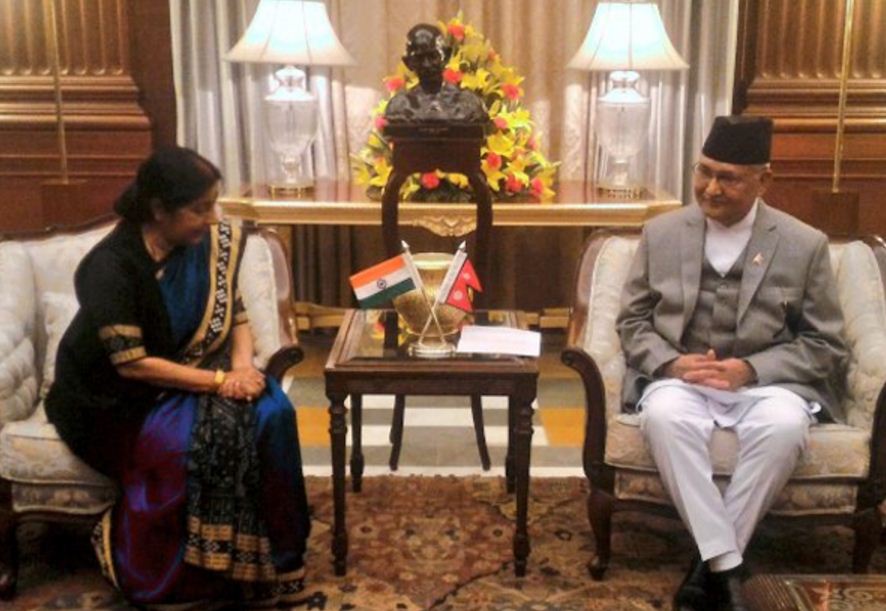 प्रधानमन्त्री ओली र भारतीय विदेशमन्त्री स्वराजबीच भेटवार्ता
