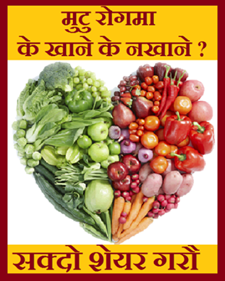 \"Mutuकाठमाडाैं । मुटु राेग तथा हृदयघातवाट बच्न भोजन व्यवस्थापनको ठूलो महत्व छ। भोजनको मात्रा भोज्य पदार्थको छनौट व्यक्तिको प्रकृति, विकृति (रोग), बल, वय (उमेर), सत्व (मानसिकता) आदिका आधारमा हुनु अति आवश्यक छ ।