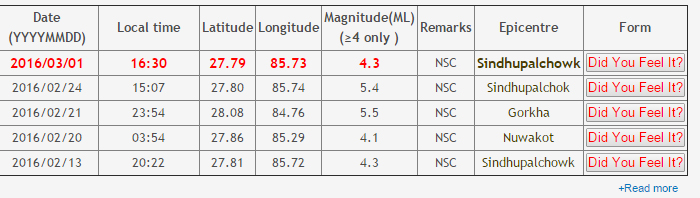 यसअघि, गएको वुधबार दिउँसो ३ बजेर ७ मिनेटमा सिन्धुपाल्चोकको बतासे आसपास केन्द्रविन्दु भएर ५ दशमलव ४ रेक्टर स्केलको पराकम्पन आएको थियो ।
