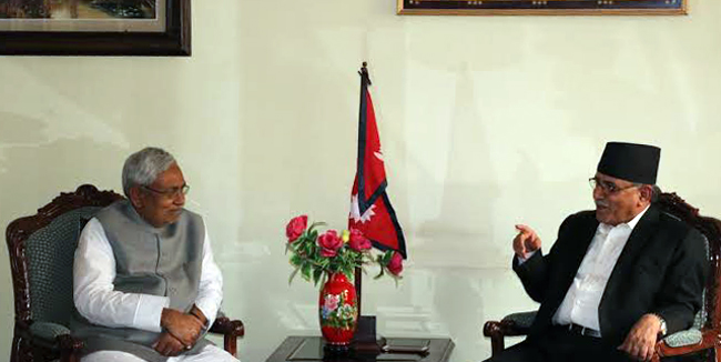 मुख्यमन्त्री नीतिशले प्रचण्डलाई अपरान्ह ४ बजे उनकै निवास लाजिम्पाटमा पुगेर भेट गरेका थिए । लाजिम्पाटबाट उनी सीधै राष्ट्रपति विद्या भण्डारीसँग भेट गर्न शीतलनिवास पुगेका थिए । राष्ट्रपतिपछि प्रधानमन्त्री केपी ओलीलाई भेट गर्ने नीतिशको कार्यसूचि छ ।