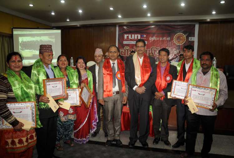 \"runकाठमाडौं । स्वदेशी जुत्ता उद्योगको क्षेत्रमा चिरपरिचित रन सुज इण्डष्ट्रिजले आफ्नो चौथांै वार्षिकोत्सव मनाएको छ । सो अवसरमा नेपाल सरकारका वन तथा भु–संरक्षण मन्त्री अग्नीप्रसाद सापकोटा प्रमुख अतिथिको रुपमा उपस्थीती रहेको थियो । कार्यक्रमलाई सम्बोधन गर्दै मन्त्री सापकोटाले उद्योगको सफलताको कामना गर्दै उद्योगको समस्यालाई सम्बोधन गर्न नेपाल सरकारको तर्फबाट सक्दो सहयोग गर्ने वचन वद्धता प्रकट गरेख । वार्षिकोत्सव कार्यक्रममा रन सुजका प्रबन्ध निर्देशक रुद्र न्यौपानेले चार वर्षको दौरानमा सहयोग गर्ने सबैलाई धन्यवाद व्यक्त गर्दै उद्योगले व्यहोर्नु परेको कच्चा पदार्थ र तयारी वस्तुविचको समान भन्सारदरलाई फेरबदल गर्नुपर्ने बताउदै आगामी २ बर्षमा विदेशी जुत्ता चप्पललाई नेपालबाट पूर्ण रुपमा विस्थापित गर्दै स्वदेशी जुत्ता चप्पलद्वारा देश आत्मनिर्भर बन्ने जानकारी दिए । साथै छोटो समयमै उद्योगले प्राप्त गरेको सफलतालाई आगामी दिनमा कायम राख्न अझ बढी मिहिनेत गर्ने चुनौती थपिएको र निकट भविष्यमा जापान र मलेशियामा रन ब्राण्डका जुत्ता चप्पल निर्यात गर्न लागीएको जानकारी गराए । कार्यक्रममा नेकपा एमालेका सभासद् शेरबहादुर तामाङ्ग, सिन्धुपाल्चोक नेपाली काग्रेसंका सचिव कृष्ण प्रसाद न्यौपाने, फुटवयर म्यानुफ्याक्चरर एशोशिएसनका अध्यक्ष रविन श्रेष्ठ लगाएतको उपस्थिति रहेको थियो । कार्यक्रममा उपस्थित अतिथीहरुले रन सुजको सफलताको कामना गर्दै शुभकामना व्यक्त गरे । वार्षिकोत्सव कार्यक्रममा रन सुज इण्डष्ट्रिजमा यो वर्ष उत्कृष्ठ कार्य गर्ने विभिन्न तह र क्षेत्रका कर्मचारीहरुलाई नगद तथा प्रमाणपत्रसमेत वितरण गरियो साथै वार्षिकोत्सवको अवसरमा कम्पनीको फ्याक्ट्री परिसर धुन्चेपाखा, भक्तपुरमा रक्तदान कार्यक्रमको आयोजना गरेको थियो । सो कार्यक्रममा कम्पनीका अध्यक्ष, कर्मचारी लगायत स्थानीय गरी २०० जनाले रक्तदान गरेका थिए । रन सुज इण्डष्ट्रिज को स्थापना धेरै वर्षको अनुसन्धान र अनुभव पछि करिब ४ वर्ष अगाडी राजधानीको पेप्सीकोलामा भएको हो । यस उद्योगको विधिवत रुपमा दर्ता भने २०६७ चैत्र १४ गते भएको थियो भने जुत्ता उत्पादन भने २०६८ सालको बैशाख महिना देखि शुरु गरेको थियो । हाल यस् रन सुज ई. प्रा लिले देशका अधिकांश सहरहरुमा आफ्नो उत्पादन बिक्री एवं बितरण गर्दै आइरहेको छ । यस उद्योगले देशका ७५ वटा जिल्लामा आफनो उच्च गुणस्तरीय तथा लोकप्रिय ब्रान्ड रनको जुत्ता चप्पल उत्पादन तथा बिक्री गर्दै आएको छ । यस उद्योगले यसै वर्षको शुरुवात देखि सेना, प्रहरी तथा अन्य क्षेत्रका सुरक्षाकर्मीहरुले प्रयोग गर्ने डिएमएस बुट दैनिक ७०० जोर उत्पादन गर्दै आएको छ । \"run डि एम एस् ब
