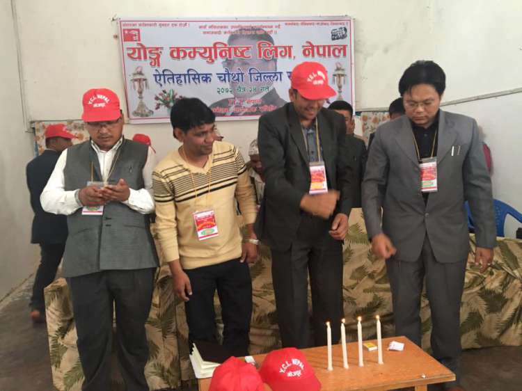 \"YCL काठमाडौं । एमाओवादीको युवा दस्ता योङ कम्युनिष्ट लिग बाईसीएलले अच्चमको प्रदर्शन गरेको छ । बुधबार भाजपुरमा वाईसीएलको चौथो जिल्ला सम्मेलनको क्र्रममा सरदरमुकाममा सयौं युवाले मौन मार्चपास गरेको हुन् । रातो टोपी र हातमा झण्डा लिएर आज बिहान भोजपुर सदरमुकाम परिक्रममा गरेका थिए । जिल्ला सम्मेलनलाई सम्बोधन गर्दै बिशिष्ट अतिथि तथा केन्द्रीय महासचिब दिपशिखाले नेतालाई गाली गर्ने छुट युवालाई नभएको बताएका छन् । उनले भने –नेताको आलोचना गर्ने होईन अब हामी युवा नै नेतृत्व गर्ने क्षमता बनाउनुपर्दछ । अब त्यो नेतृत्वको बिकास वाईसीएलले गर्छ । सो सम्मेलनका प्रमुख अतिथि भोजपुर जिल्लाका अध्यक्ष शिखरले कालोबजारी नियन्त्रण गर्न वाईसीएल जाग्ने बताए । भोजपुरमा वाईसीएलको चौथों जिल्ला सम्मेलनले सुरेन्द्र राइ युवक को अध्यक्षतामा ५१ सदस्यिय जिल्ला समिति गठन गरेको छ। समितिको उपाध्यक्षमा युवराज राइ, प्रभा राइ र यंगराज राइ , सचिव संदीप राइ, सहसचिव अभियान राइ र कोषाध्यक्ष प्रकाश राइ रहेका छन् । कार्यक्रममा नेपाली कांग्रेको भातृ संगठन तरुण दल भोजपुरका अध्यक्ष सरोज बस्नेत तथा नेकपा एमालेको संगठन युवा संघ भोजपुरका अध्यक्ष सन्दीप राईले सम्मेलनको सफलताको लागी शुभकामना दिएका थिए । \"YCL \"YCL