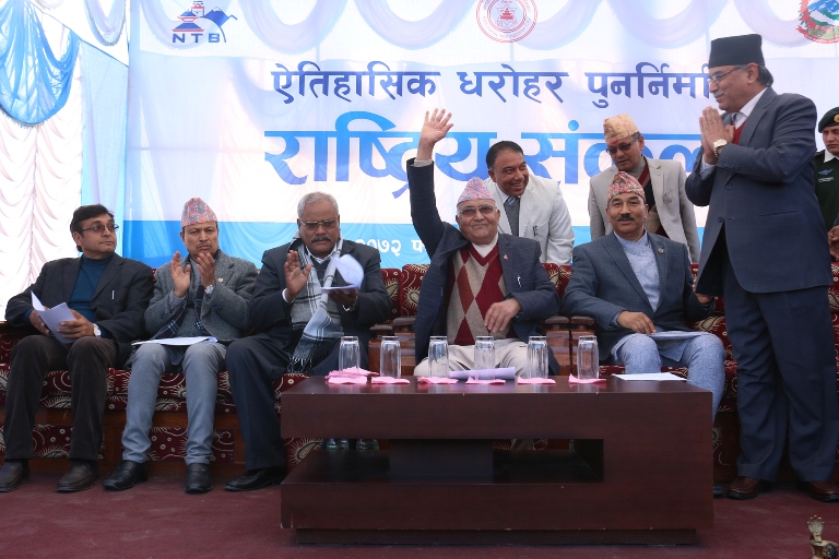 \";+:s[lt, काठमाडौ। सरकारले भूकम्प गएको एक वर्षको स्मरण गर्दै क्षतिग्रस्त ऐतिहासिक, धार्मिक तथा सांस्कृतिक सम्पदा पुनः निर्माणको काम विभिन्न चार स्थानबाट सुरु गर्ने भएको छ । संस्कृति, पर्यटन तथा नागरिक उड्डयन मन्त्रालयको आयोजनामा सोमबार बिहान प्रधानमन्त्री केपी शर्मा ओलीले ऐतिहासिक सम्पदा पुनः निर्माणको सुरुवात अनन्तपुर मन्दिर स्वयम्भूको पुनः निर्माण शुभारम्भबाट गर्ने कार्यक्रम रहेको छ । त्यस्तै, पाटन दरबार क्षेत्रमा रहेको मणिमण्डपको पुनः निर्माण शुभारम्भ पूर्वप्रधानमन्त्री तथा एकीकृत नेकपा ९माओवादी०का अध्यक्ष पुष्पकमल दाहालले गर्नेछन् भने वंशगोपाल मन्दिर, हनुमानढोकाको पुनः निर्माणको नेपाली काँग्रेसका नेता रामचन्द्र पौडेलले शुभारम्भ गर्नेछन् । त्यस्तै, नेपाल मजदुर किसान पार्टीका अध्यक्ष तथा सांसद नारायणमान बिजुक्छेले भक्तपुरको फसि देगः मन्दिर र याला गेटको जिर्णोद्धारको पुनः निर्माणको शुभारम्भ गर्नेछन् । भूकम्पबाट क्षति भएका ऐतिहासिक तथा पुरातात्विक सम्पदाको पुनः निर्माणको कार्य सोमबार चार स्थानमा ९ बजे एकैपटक प्रधानमन्त्री तथा पार्टीका शीर्षनेताले शुभारम्भ गर्ने संस्कृति, पर्यटन तथा नागरिक उड्डयनमन्त्री आनन्दप्रसाद पोखरेलले जानकारी दिए । चार स्थानबाट पुनः निर्माणको शुभारम्भपछि ११ बजे भृकुटीमण्डपमा प्रधानमन्त्री ओली तथा प्रमुख राजनीतिक दलका नेताको उपस्थितिमा गत एक वर्षभित्र नेपालमा भएका पर्यटन क्षेत्रका सकारात्मक घटना, तस्बिर तथा भिडियो क्लिपको प्रदर्शनी गर्ने कार्यक्रम रहेको छ ।