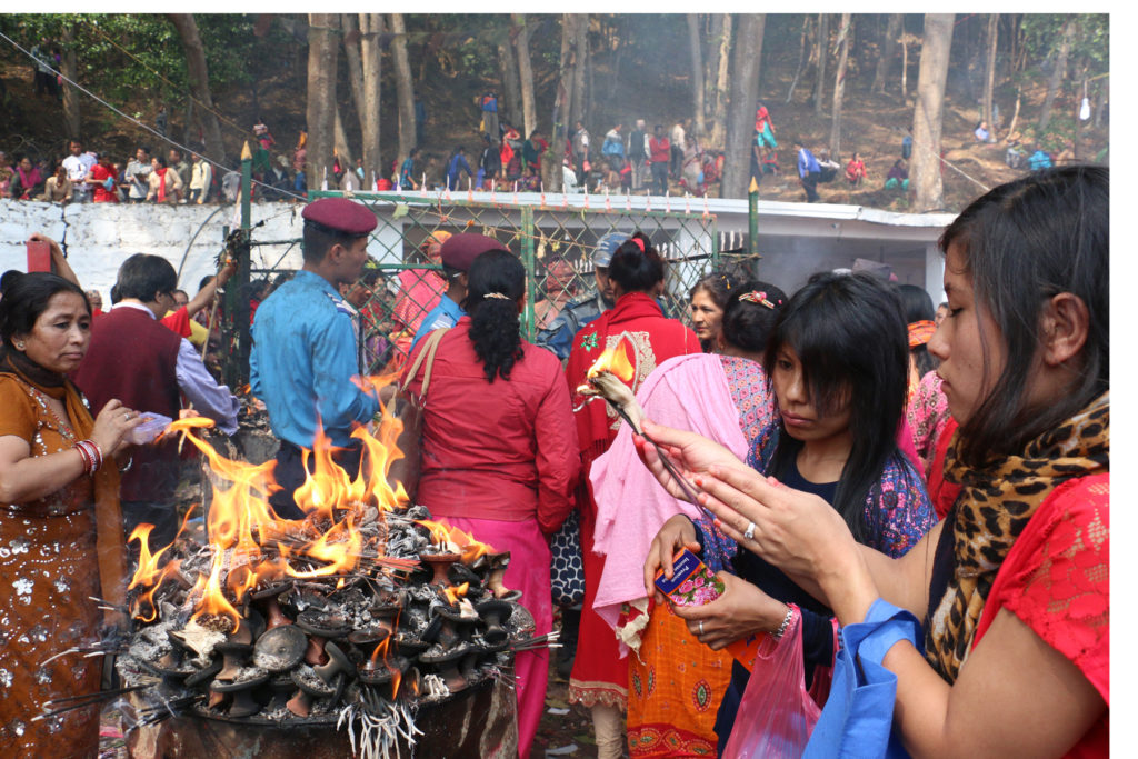 मातातीर्थमा आमाको मुख हेर्ने दर्शनार्थीको भीड