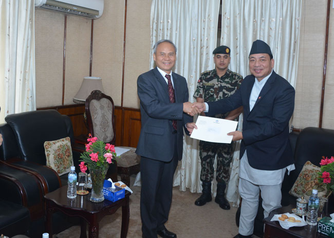 शुक्रबार अपरान्ह उपराष्ट्रपतिको कार्यालय बहादुर भवनमा भेट गरेर उपप्रमुख पायरु नेतृत्वको सात सदस्यीय प्रतिनिधि मण्डलले उपराष्ट्रपतिलाई १२–१७ जुन २०१६ मा युनान प्रान्तको कुन्मिङ शहरमा हुने ‘चौथो चीन–दक्षिण एशिया व्यापार मेला तथा २४ औँ चीन कुन्मिङ आयात निर्यात व्यापार मेला’को उद्घाटन समारोह तथा अन्य प्रमुख कार्यक्रमहरुमा विशिष्ट अतिथिको रुपमा उपस्थित भईदिनुहुन आमन्त्रण गरेको छ ।