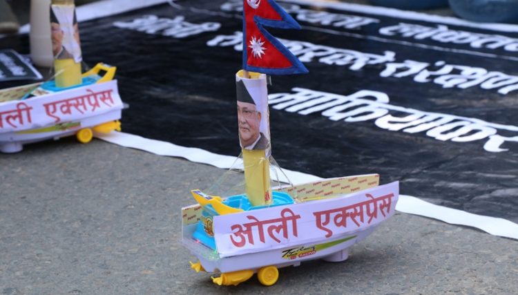 \"oli-express\" काठमाडौं । विरोधका विभिन्न शैलीहरु हुन्छन् । आन्दोलनकारीहरु कहिले सडकमा नाङ्गो जुलुस निकालेर विरोध गर्ने गर्छन् भने कहिले थाल ठटाएर त कहिले सिट्ठी फुकेर विरोध प्रदर्शन गर्ने गरिन्छ । यस्ता अनौठौं शैलीमा प्रदर्शन गर्ने चलन नेपालमा मात्रै चलेको हो । विश्वका विभिन्न मुलुकमा विभिन्न शैली अपनाएर विरोध प्रदर्शन गरिन्छ । यस्ता विरोधका शैलीहरु विद्यार्थीहरुले गर्ने गर्छन । कांग्रेस निकट विद्यार्थी संघले सोमवार यस्तै किसिमको विरोधको शैली अपनाएको छ । प्रधानमन्त्री केपी शर्मा ओलीले केही दिनअघि दिएको अभिब्यक्तिलाई ब्यङग्य गर्दै उनीहरुले सडकमा प्रदर्शन गरेका हुन् । प्रधानमन्त्री निवास बालुवाटारमा प्रदर्शन गरेका नेवि संघका विद्यार्थीहरुले पानी जहाजदेखि ओली एक्सप्रेस रेल बनाएर ब्यङग्य गरेका थिए । उनीहरुले कालोबजारी तथा महङ्गीको विरोध गर्दै बालुवाटारमा प्रदर्शन गरेका थिए । ब्यङगात्मक प्रदर्शनका साथै विद्यार्थीहरुले महंगीविरुद्ध सडकमा रित्ता ग्यास सिलिण्डर, खानेपानीको जार तथा बिरुद्ध प्रधानमन्त्री निवास वालुवाटारमा खालि सिलिण्डर र पानीको जार सहित प्रदर्शन गरेका थिए । सरकारविरुद्ध सडकमा उत्रिएको कांग्रेस निकट विद्यार्थी संगठनले जेठ १३ गते रत्नपार्कस्थित पेट्रोल पम्प अगाडि ब्यङगात्मक ओली सडक सम्वाद समेत आयोजना गरिने भएको प्रवक्ता यूपी लामिछानेले बताए ।