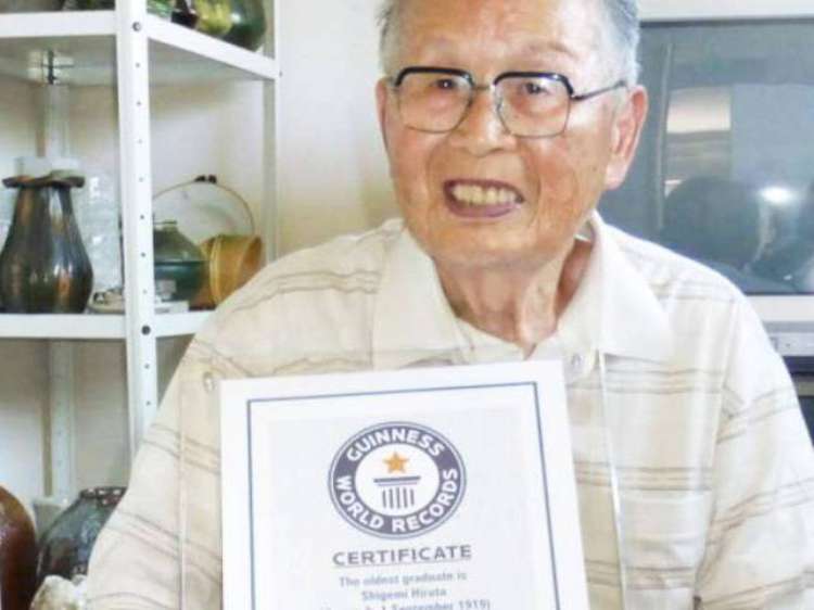 \"1116078-abadebbbdfcacd_x-1465015958-407-640x480 टोकियो । जापानका एक नागरिकले ९६ वर्षमा स्नातक गरी विश्वको सबैभन्दा पाको उमेरमा सो तहको अध्ययन गर्ने बृद्ध बनेको छन् । जापानका सिगेमी हिराता संसारमा नै पाको उमेरमा स्नातक गर्ने पहिलो व्यक्ति बनेका छन् । आजको नयाँ पत्रिका दैनिकमा खबर छ– उनले सेरामिक कला विषयमा स्नातक गरेका हुन् । उनलाई जिनिज वल्र्ड रेकर्डले संसारको सबैभन्दा पाको उमेरमा स्नातक गर्ने व्यक्तिका रुपमा प्रमाणपत्र प्रदान गरेको अन्तर्राष्ट्रिय सञ्चारसंस्थाहरुले जनाएका छन् । सन् १९१९ मा हिरोसिमामा जन्मिएका युमियुरीलाई उनका साथीहरुले सोही कलेजमा स्वागत गरेका थिए । मलाई बधाई ज्ञापन गर्न को साथी आए मैले चिनिन, तर मलाई आज निकै खुसी लागेको छ, उनले भने । त्यस रेकर्डले आफूलाई निके ठूलो उर्जा दिएको उनले बताए । स्नातक पास गर्न उनलाई ११ वर्ष लागेको थियो । जागिरबाट सेवानिवृत्त भएका उनी ११ वर्षअघि सो विश्वविद्यालयमा भर्ना भएका थिए ।