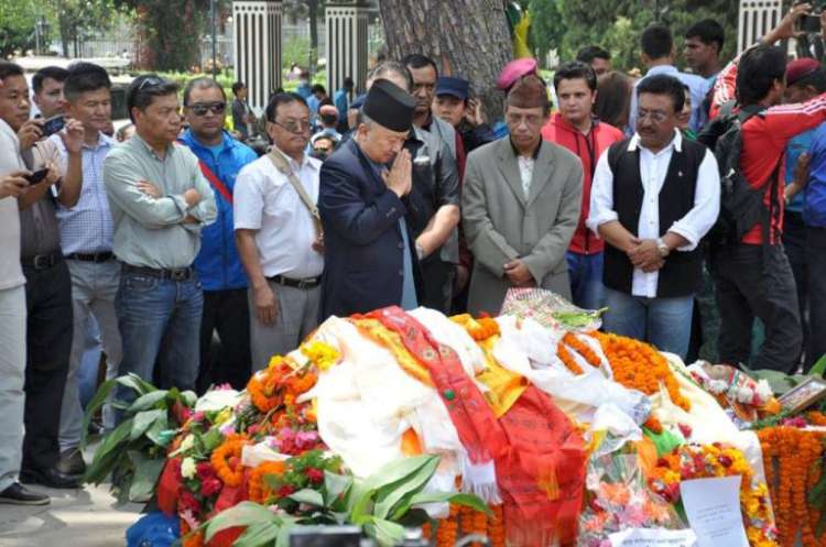 \"ambar-gurung10-768x509-750\" काठमाडौं । राष्ट्रियागानका संगीतकार तथा नेपाली संगीत क्षेत्रका एक नक्षत्र अम्बर गुरुङको हिजो राष्ट्रिय सम्मानका साथ अन्त्यष्टि गरिएको छ । सो अन्त्यष्टिमा विभिन्न व्यक्तिहरुले व्यक्त गरेका भनाईहरु आजको अन्नपूर्ण पोस्टले खबर छापेको छ । प्रस्तुत छ, केही भनाईहरुः नन्दबहादुर पुन : उपराष्ट्रपति राष्ट्रभक्तिका बारेमा हामीले अम्बर गुरुङबाट धेरै सिक्नुपर्छ । उहाँ महान संगीतकार हुनुहुन्थ्यो । उहाँको निधन देशका लागि ठूलो क्षति हो । दुःखको यो घडीमा शोक सन्तप्त परिवारप्रति हार्दिक समवेदना प्रकट गर्दछु । राजेन्द्र क्षेत्री : प्रधानसेनापति संगीतका माध्यमबाट राष्ट्रिय एकतामा ठूलो योगदान पु¥याउनुभएका अम्बर गुरुङद्धारा संगीतवद्ध रातो र चन्द्रसूर्य गीतलाई नेपाली सेनाले सेनाको गीतका रुपमा लिएको छ । उहाँको योगदानको कदर गर्दै मानार्थ महासेनानी दिइएको थियो । उहाँको निधनले राष्ट्रलाई नै क्षति पुगेको छ । शेरबहादुर देउबा : सभापति, नेपाली कांग्रेस अम्बर गुरुङ महान् कलाकार संगीतकार हुनुहुन्थ्यो । नेपालका लागि उहाँ अमूल्य निधि हुनुहुन्थ्यो । उहाँले नेपाललाई चिनाउनु भएको छ । संगीतका माध्यमबाट नेपाल र नेपालीलाई एक बनाउनु भएको छ । राष्ट्रभक्तिको कुरा गर्दा उहाँ आफैंमा उदाहरणीय व्यक्तित्व हुनुहुन्थ्यो । उहाँको निधनले राष्ट्रलाई ठूलो क्षति पुगेको छ । डा. बाबुराम भट्टराई : पूर्वप्रधानमन्त्री अम्बर गुरुङको निधनले सांगीतिक क्षेत्रमा अपूरणिय क्षति भए पनि उहाँले आफ्नो धरोहर छाडेर जानुभएको छ । नेपाली जनताका तर्फबाट हामी उहाँलाई सदैव सम्झिरहने छौं । निरन्तर लगनशील, आजीवन देशको श्रीवृद्धिमा लागिरहनुभएका उहाँ उच्चा कोटीका प्रतिभा हुनुहुन्थ्यो । त्यसबाट हामीले केही कुरा सिक्नुपर्छ ।