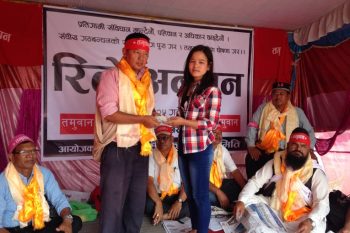 \"rele-ansan-765x510\"पोखरा । सङ्घीय गठबन्धनद्वारा काठमाडौँको खुल्ला मञ्चमा आयोजित रिले अनशनको ऐक्यबद्धता जनाउँदै तमुवान संयुक्त सङ्घर्ष समितिद्वारा पोखरामा सञ्चालित रिले अनशनमा १०४ जना सहभागी भएका छन् । जेठ २५ गतेदेखि सुरु एक हप्ते अनशन एक दिन बढाएर मङ्गलबारसम्म पु¥याइएको तमुवान सङ्घर्ष समितिका संयोजक हुम गुरुङले जानकारी दिए । प्रत्येक दिन बिहान ७ बजेदेखि बेलुका ७ बजेसम्म रिले अनशन राखिएको थियो । संयोजक गुरुङका अनुसार समितिले असार मसान्तसम्मको थप आन्दोलनको कार्यक्रम सार्वजनिक गरेको छ । जसअनुसार असार ७ गतेसम्म काठमाडौँ खुल्ला मञ्चमा भइरहेको रिले अनशनमा सक्रिय सहभागिता जनाउने, ८ गतेदेखि असार मसान्तसम्म गाउँगाउँमा जागरण, सङ्गठन निर्माण र असार २५ गते रक्तदान गर्ने कार्यक्रम छ । रासस
