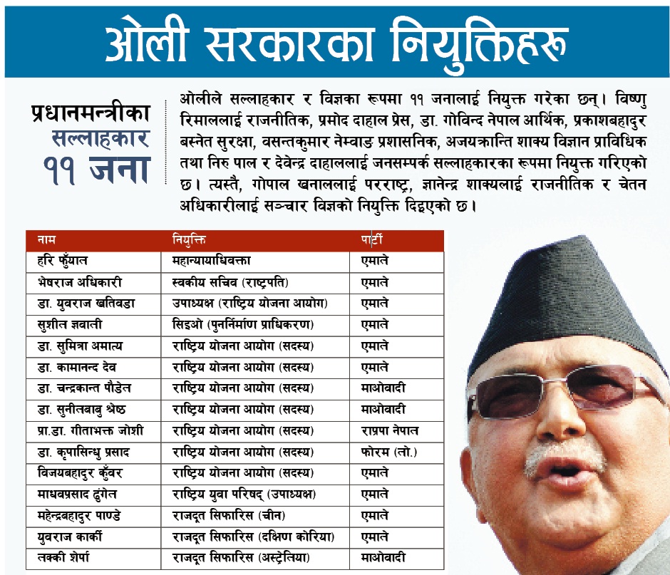 ओली सरकारको पालामा कस–कसले पाए राजनीतिक नियुक्ति ?