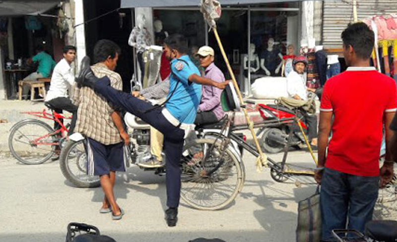 रिक्सा मजदुरलाई ‘किक’ प्रहार गर्ने प्रहरी कारबाहीमा