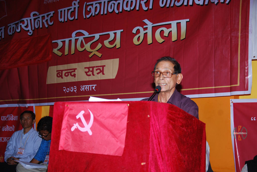 \"baidhya_velaकाठमाडौं । माओवादी आन्दोलनका पुराना तथा सिदान्तनिष्ठ नेता भनेर चिनिएको मोहन वैद्य नेतृत्वको नेकपा क्रान्तिकारी माओवादीको राष्ट्यि भेलामा पुराना अनुहार देखिएका छैनन् । पुरानो बानेश्वरस्थित ओमसाइ पार्टी प्यालेसमा मंगलबारदेखि शुरु भएको बन्दसत्रमा ७ सय प्रतिनिधिहरु सहभागी रहेको पार्टी प्रवक्ता सीपी गजुरेलले बताए । क्रान्तिकारी माओवादीबाट रामबहादुर थापा बादलसहितका अधिकांश नेता कार्यकर्ता नेकपा माओवादी केन्द्रमा गएपछि वैद्यले सोमवारदेखि राष्ट्यि भेला बोलाएका हुन् । \"baidhya_vela वैद्यका अधिकांश नेता कार्यकर्ता एकतामा गएपछि भेलामा भने नयाँ अनुहार मात्रै देखिएको भेलामा सहभागी एक प्रतिनिधिले बताए । आफ्नो पार्टीबाट नेता कार्यकर्ता माओवादी केन्द्रमा गए पनि भेलामा उपस्थित कार्यकर्ताहरु निकै उत्साहित देखिएको प्रवक्ता गजुरेलले बताए । विचारको रक्षा गर्दै क्रान्तिकारी धारलाई अघि बढाउन भेलाले मद्दत गर्ने पनि गजुरेलले बताए । मंगलबारदेखि शुरु भएको वैद्य माओवादीको राष्ट्यि भेलाको बन्द सत्रमा अध्यक्ष मोहन वैद्यले राजनीतिक प्रतिवेदन पेश गरेका छन् । अध्यक्षको राजनीतिक प्रतिवेदनमाथि मंगलबारदेखि नै सामुहिक छलफल शुरु हुने प्रवक्ता गजुरेलले बताए । सोमवार राष्ट्यि सभागृहमा वैद्यले भेलाको उ्दघाटन गरेका थिए ।