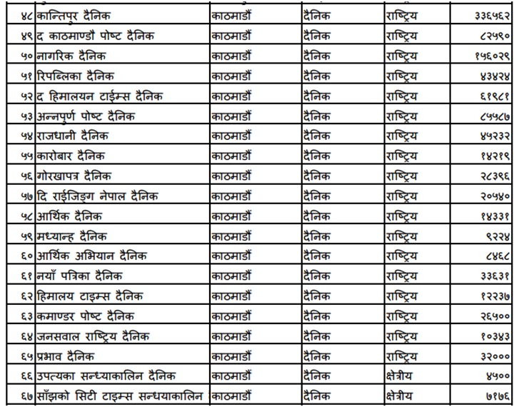 कुन कुन राष्ट्रिय दैनिक कति संख्यामा छापिन्छन् ? (सूचीसहित)