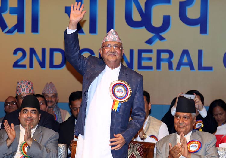 [caption id=\"attachment_81673\" align=\"aligncenter\" width=\"750\"]\" तस्बिर : रासस[/caption] काठमाडौं, २२ असार । प्रधानमन्त्री केपी शर्मा ओलीले अहिलेको सरकार ढाल्न खोज्नेलाई पाप लाग्ने बताएका छन् । मंगलबार राजधानीमा आयोजित नेपाल परिवार दलको महाधिवेशन उद्घाटन सत्रलाई सम्बोधन गर्दै प्रधानमन्त्री ओलीले भने, ‘अहिलेको सरकार बजारमा आएको छाडिगए पाप लाग्ला भन्ने गीत जस्तै ढालिगए पाप लाग्छ।’ आजको अन्नपूर्ण पोस्ट दैनिकमा खबर छ – ओलीले वर्तमान सरकार इतिहासकै राम्रो र लोकप्रिय भएको समेत दाबी गरे। ‘अहिलेको सरकार इतिहासकै राम्रो र जनप्रिय छ,’ उनले भने, ‘यो सरकार ढाल्न खोज्ने आउने चुनावमा नराम्ररी पराजित हुन्छन्।’ ओलीले ५१ वर्षको राजनीतिक जीवनमा अहिले जत्तिको लोकप्रिय सरकार कहिल्यै नदेखेको समेत बताए। ‘छेउ छाउमा रहनेलाई यो सरकार ढलेपनि हुन्थ्यो भन्ने लागेको होला तर मैले यसरी जनताले मनपराएको र लोकप्रिय सरकार ५१ बर्षको राजनीतिक जीवनमा देखेको र भोगेको थिइन,’ ओलीले भने। एमाले अध्यक्ष समेत रहेका ओलीले अहिले सरकार ढाल्ने र बनाउने खेलले अस्थिरता ल्याउने भएकोले जनता त्यस्तो पक्षमा नरहेको दाबी गरे। प्रधानमन्त्री ओलीले सरकार ढल्ने हल्ला साँचो नभएको भन्दै त्यस्ताको पछि नलाग्न समेत आग्रह गरे । यो सरकार जनताको भएको र जनताबाट निर्वाचित भएकाले कसैले कुरा काट्दैमा नढल्ने समेत उनले बताए । ओलीले संसदको बहुमतले यो सरकार बनाएकोले यसलाई बिस्तार गर्न र अरुलाई सहभागि गराउन आफू लागेको बताए। उनले २०७४ साल माघ अगाडिसम्म निर्वाचन गरेर संक्रमणकाल टुंग्याउनु पर्ने भएकाले अलमलमा नपर्न आग्रह गरे। उनले अहिले देशमा असाधारण एकता प्रदर्शन भएकोले यसलाई कसैले पनि हल्लाउन नसक्ने दाबी गरे।
