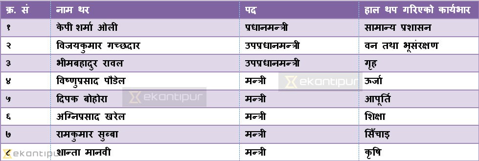 माओवादीले छाडेका मन्त्रालयहरु कस–कसलाई दिइयो ?