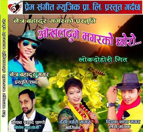 \"FB_IMG_1468159958929\"काठमाडौं । नेपाली लोक गीत संगीतका पारखीहरुका लागि सर्जक नेत्र थापा मगरले “ ओखलदुंगे मगरको छोरो ” बोलको गित बजारमा ल्याएका छन् । नेत्रकै शब्द अनि दिपक थापा मगर को लयमा रहेको उक्त गितमा चर्चित गायिका देवि घर्ति र दिपक थापा मगरको स्वर रहेको छ । लेखक केशव प्रसाद पाण्डेको बिशेष सहयोगीको भुमिकामा निकै नै उत्कृष्ट बनेको उक्त गितको बजार व्यवस्थापन प्रेम संगीत म्युजिक प्रालिले गरेको छ । युटुव च्यानल हाइलाइट्स नेपाल मार्फत सार्वजनिक गरिएको यस गितको म्युजिक भिडियोको निर्देशन चर्चित निर्देशक प्रकाश भट्टले गरेका हुन् । एकान्त मगर को छायाँकन र अर्जुन एकान्त को सम्पादनमा बनेको गितको म्युजिक भिडियोमा नेत्र थापाको आफ्नै कुशल अभिनय साथमा मोडल,रिना मगर,काजी श्रेष्ट , जुना मगर सहितको अभिनय देख्न सकिन्छ । दर्शक श्रोताको माया र साथ रहे आगामि दिनमा अझै उत्कृष्ट गितहरु बजारमा ल्याउने र नेपाली लोकगित संगितको संरक्षणमा लागि पर्ने सर्जक नेत्र थापाको योजना रहेको छ । हेर्नुस भिडियो https://www.youtube.com/watch?v=AprgV47j6FI