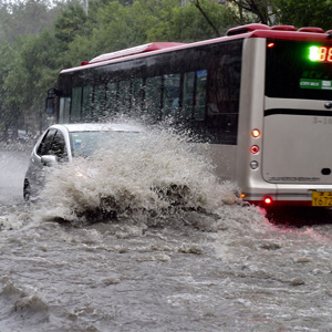 \"flood\"उत्तरी चाइनाको तेन्जिनमा अविरल वर्षाका कारण आएको बाढीले डुवानमा परेको सडक र सवारी साधन । तस्विर : सिन्हा