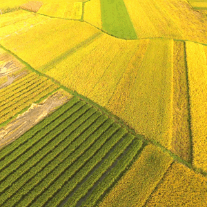 दक्षिणि चाइनाको वैसा भन्ने गाउँमा धानखेतिका लागी प्लटिङ गरिएको क्षेत्रमा पहेलपुर धान । तस्विर : सिन्ह्वा \"dhan-750\"
