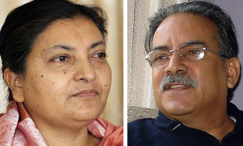 प्रचण्डले राष्ट्रपति विद्यादेवि भण्डारीलार्इ भेट्दै