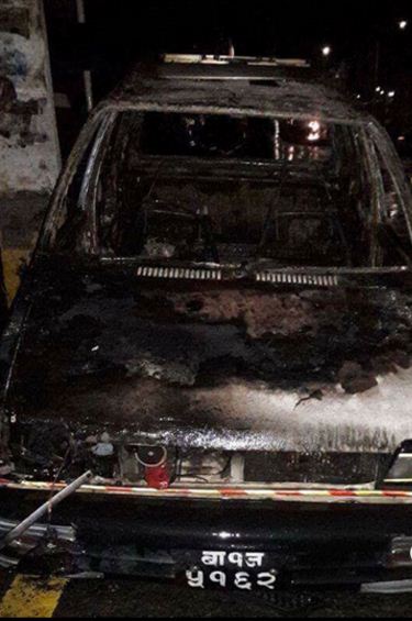 विप्लव माओवादीका कार्यकर्ताले बानेश्वर र सामुखुसीमा ट्याक्सी जलाए